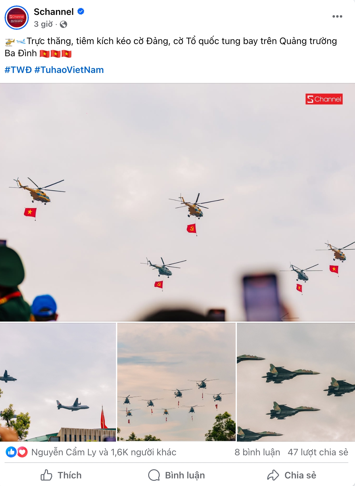 Màn trình diễn của Không quân nhân dân Việt Nam mở đầu cuộc diễu binh, diễu hành trong lễ kỷ niệm 80 Cách mạng tháng Tám thành công và Quốc khánh nước CHXHCN Việt Nam đã trở thành điểm nhấn đặc biệt, thu hút sự quan tâm, ngưỡng mộ của đông đảo nhân dân và bạn bè quốc tế.